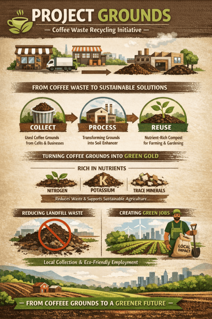 Each year, millions of tons of used coffee grounds are discarded globally, most of which end up in landfills where they contribute to methane emissions and unnecessary organic waste. Project Grounds is a circular sustainability initiative focused on transforming coffee waste into valuable agricultural resources.